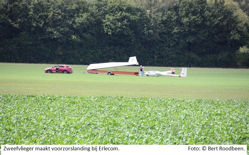 ERLECOM – Wat een kort routine vluchtje moest worden maandag 21 juli, liep voor vlieger Ian even anders. Na de start van vliegveld Malden, wat ook de eind bestemming was , moest hij aan het begin van de middag noodgedwongen zijn toestel aan de grond zetten, dit wegens verandering van het weer. Zijn keus viel op het weiland naast de Erlecomseweg t.h.v. boerderij van Eck. Nadat de hulptroepen waren gewaarschuwd, werd hij en het toestel snel opgehaald en ging de reis via de weg verder. Foto’s: © Bert Roodbeen. Kijk HIER ===================================================================