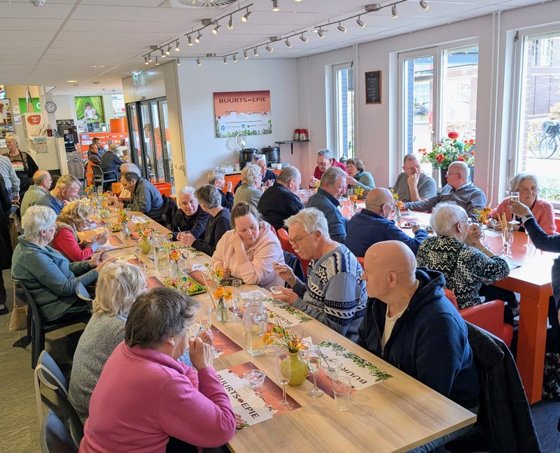 Persbericht : MILLINGEN – Op donderdagmiddag 26 maart organiseerde Forte Welzijn samen met zeven enthousiaste vrijwilligers van de Buurtsoep een gezellige voorjaarsbrunch in Kulturhus Den Ienloop in Millingen. Aan mooi versierde lange tafels genoten in totaal 35 inwoners van een lenteachtig viergangenmenu. De brunch bestond uit een smaakvolle amuse, soep, een pasteitje en een heerlijk toetje. Naast het lekkere eten stond vooral het samenzijn centraal. Deelnemers zagen oude bekenden terug en legden nieuwe contacten, wat zorgde voor een warme en ontspannen sfeer in het Kulturhus.