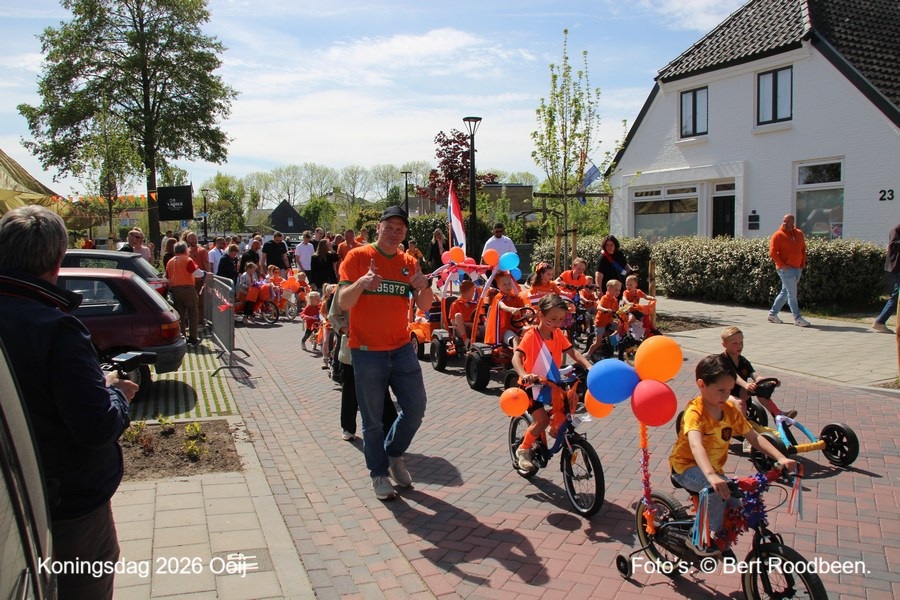 OOIJ – Maandag 27 april organiseerde C.V. De Deurzakkers samen met Bar-Brasserie ’t Hoekje Koningsdag. Hieraan werd ook door muziekvereniging Ooijse Toekomst en schutterij Eendracht medewerking verleend, evenals door de pas gedecoreerde lintjesdragers Ed Toonen en Piet Verriet. Wethouder Ria Barber vertegenwoordigde de gemeente Berg en Dal. Na de rondgang door het dorp met de kinderen op hun versierde fietsen (de drie mooiste konden een prijsje uitzoeken), kregen zij een suikerspin, limonade en snoep. Er waren diverse spellen, springkussens en er kon worden geschminkt. DJ Jos Vink zorgde voor de stemming. Foto’s: © Bert Roodbeen Klik HIER
